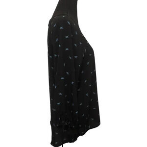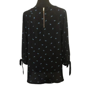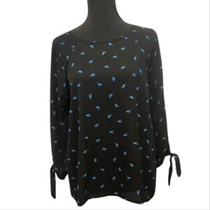 Papermoon Blouse Black with Blue Bird Pattern Tie Sleeve Detail Size Large