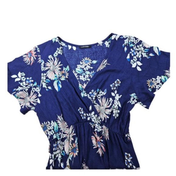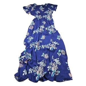 Papermoon Dress Womens Medium Blue Floral Maxi Short Sleeve Boho Summer Casual