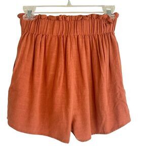 Papermoon Juniors Linen Blend Pull On Elastic Waist Paper Bag Shorts Rust Small