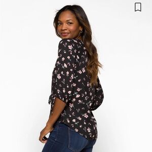 Papermoon's Larie Tie Sleeve Blouse is a stylish way to elevate your workday wardrobe. This blouse features a tie at the sleeve for a unique twist, and a scoop neck and flowy fit make it a comfy choice for your next picture day.