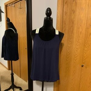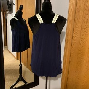 Navy with design on straps. Racerback style, light and flowy. Size medium. Worn a handful of times, no tears or stains.