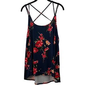 Papermoon Sleeveless Spaghetti Strap Blouse Shirt Top Sz 1x Navy Blue Floral NWT