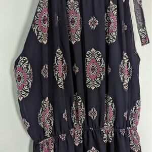Papermoon Stitch Fix Navy Blue Pink Medallion Print Lined Dress size MP