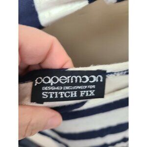 Papermoon Stitch Fix Womens Top Medium Navy Ivory Striped Bow Back Long Sleeve