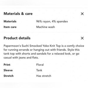 Papermoon Suchi Smocked Yoke Knit Tank Top NWOT