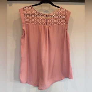 Top with lace detail at neckline. In excellent condition. Has one button at the back.