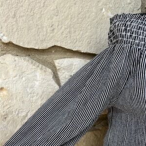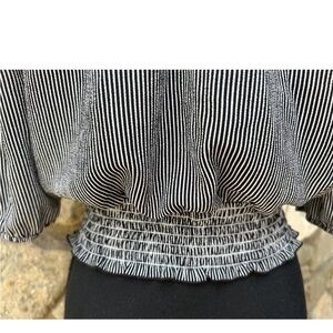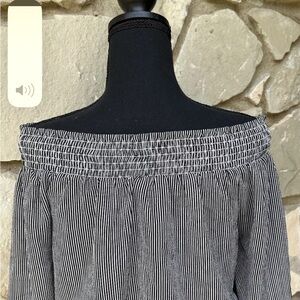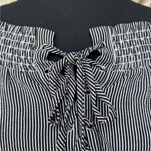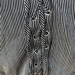 Black White Striped Lace Up Off/On Shoulder EC