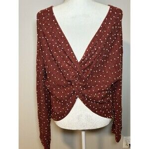 Papermoon Twist Back Sweater Crimson White Pom Pom Size Large