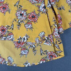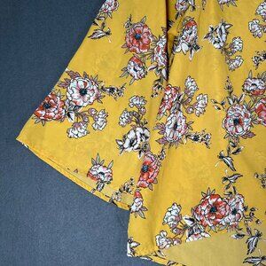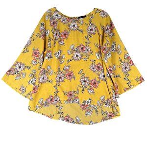 Papermoon Women's Large Yellow Floral Round Neck Wide Sleep Pullover Blouse High Low Hem. 100% Polyester.