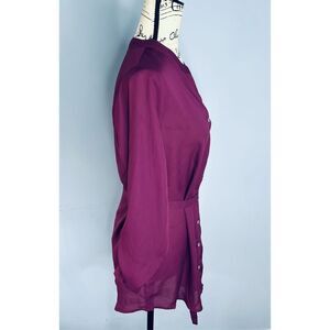 Tags: business apparel, lightweight, tunic, purple, silky, button-up