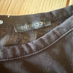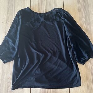 Papermoon black long sleeve peasant top with Swiss dots sheer arms -2X