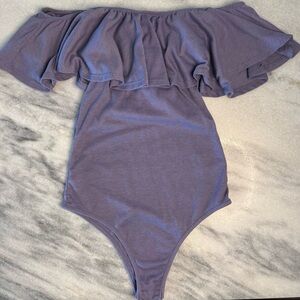 Paperoc Purple Ribbed Off Shoulder Ruffle Bodysuit Size Small