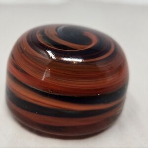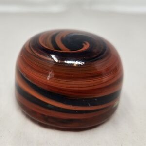 Paperweight Orange & Black Swirls Art Blown Glass Small Marble Like Look