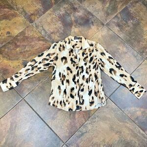 Paperwhite Leopard Animal Print Button Up Blouse 8