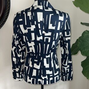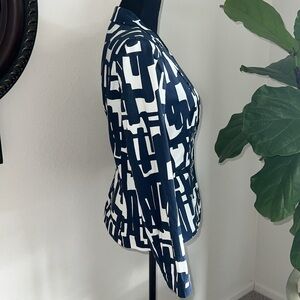 Paperwhite by Anthropologie Woman’s Blue White Geometric Single Breast Blazer 8