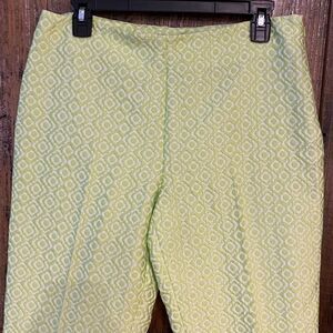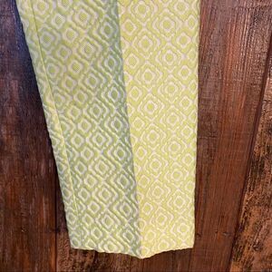 Incredible pair of high waisted, fluorescent green, raised diamond pattern cigarette pants.