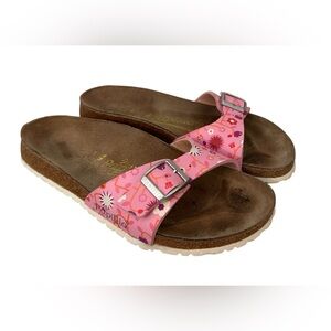 Papillio Birkenstock Birkis Pink Floral Buckle Sandals Slide-on Women’s Sz 8 38