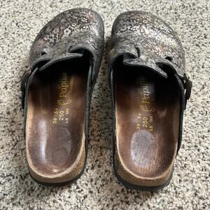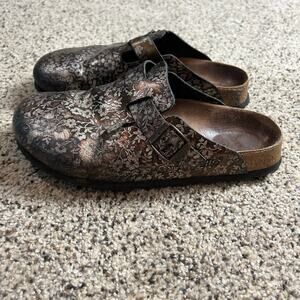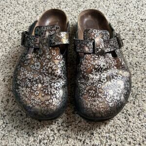 Papillio Birkenstock Boston Clogs Women's Size 8 EU 39 Pepe Bronze Floral Brown