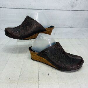 Papillio Birkenstock Clogs Brown Embossed Leather Wedge Womens Size 40 | 9-9.5
