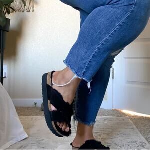 Papillio Birkenstock Daytona Shearling Black Platform Sandals Women Size 39 EU