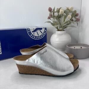 Papillio Birkenstock Debby Slip On Wedge Silver Metallic Women 7/EU38 Tried On
