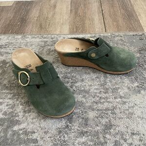 Papillio Birkenstock Fanny Ring-Buckle Sandals Olive Green Suede Leather 38/US8