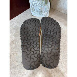 Cork sole shows moderate wear; straps and footbed have visible use but remain functional. Top to bottom = 10.5 inches.