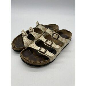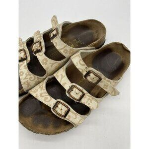 Papillio Birkenstock Women Floral Sandals Tan 3 Buckle Straps 245 L 7 **read**