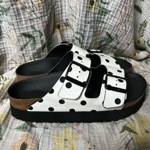 Papillio By Birkenstock Black and White Polka Dot Platform Arizona Sandals