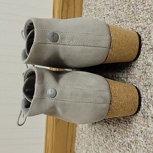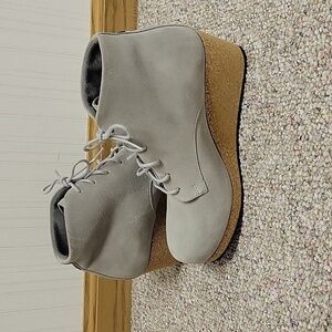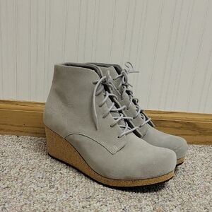 Papillio Light Gray Suede Wedge Boots, Womens Sz 37 (US 7)