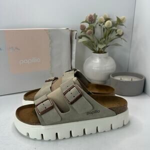Papillio by Birkenstock Arizona Pap Chunky Leather Sandal Taupe Women 10/Men 8