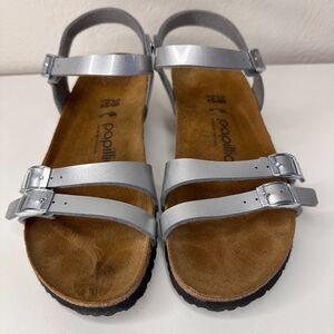 Papillio by Birkenstock Lana Wedge Sandal Size 38 / US 7 Silver Metallic