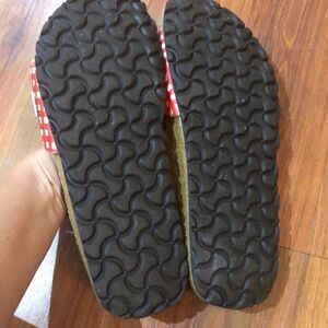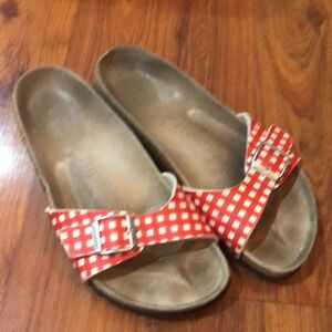Papillon by Birkenstock red and white gingham slip on sandals, size 37