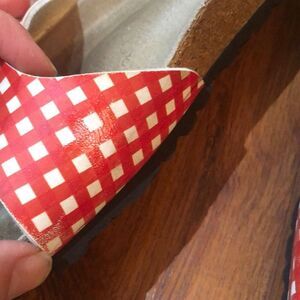 Papillon by Birkenstock red and white gingham slip on sandals, size 37