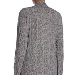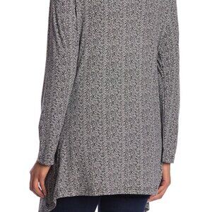 PAPILLON BLACK AND WHITE Herringbone Draped Open Front Cardigan