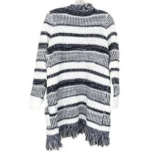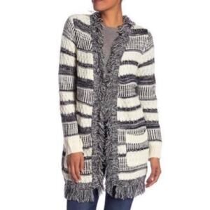 Papillon Black White Knit Fringe Open Front Cardigan Sz S