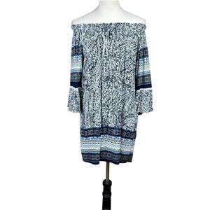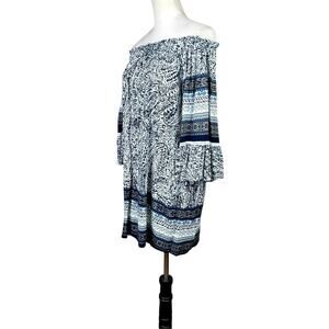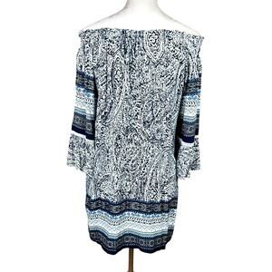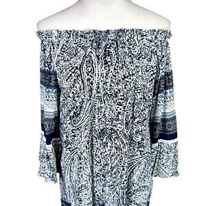 Papillon Black and White Paisley Patterned Off the Shoulder Bell Sleeve Top