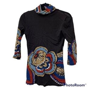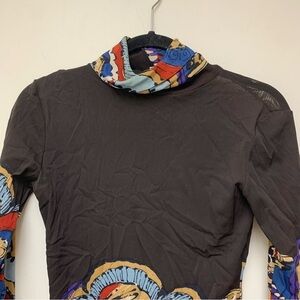Beautiful Papillon Blanc Brown Mesh Abstract Print Turtleneck. Soft.