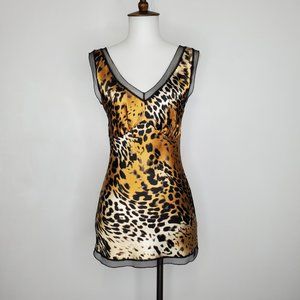 Papillon Blanc Mob Wife Multi-Color Animal Print V-Neck Sleeveless Top Size S
