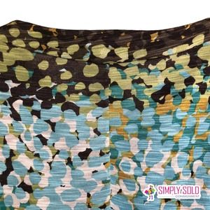 Papillon Blanc Women's A-Line Dress Long Sleeve V-Neck Blue Green Colorblock M