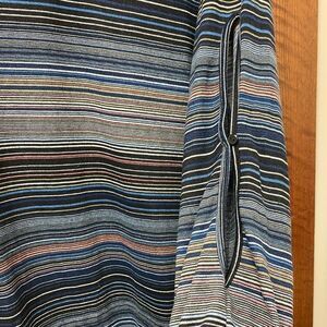 Like new Papillon blue and black striped cut out sleeve tunic top. EUC, great shape, size large, polyester, elastic on cuffs, soft texture, slits cut in sleeves. See pictures for details.