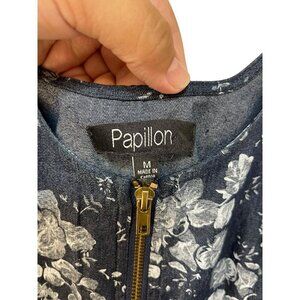 Papillon Denim Floral Mini Dress Full Zip Closure With Pockets Size M