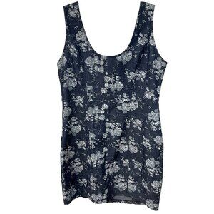 Papillon Denim Floral Mini Dress Full Zip Front Closure With Pockets Sz M