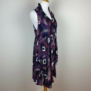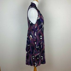 Papillon Dress L Multicolor V-Neck Pockets Bustled Sleeveless A-Line Summer Women's Large