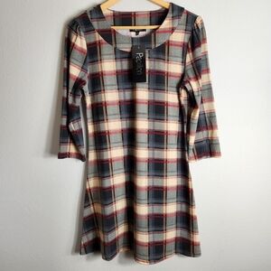Papillon Gray Plaid 3/4 Sleeve Knit Dress-Size M (NWT)