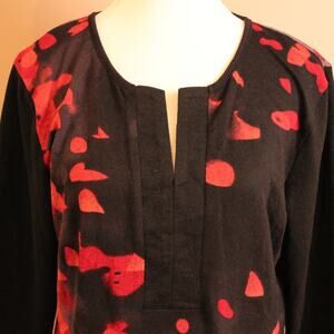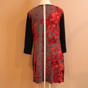 Papillon Lightweight Knit Abstract Floral Knee Length Dress, Notch Neck sz XL