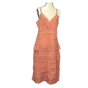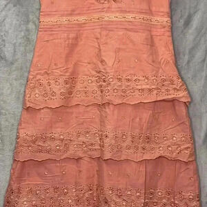 Papillon Los Angeles Embroidered Eyelet Layered Dress Romantic Cotton Sz Small