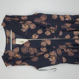 Papillon Maxi Dress Full Zip Front Dandelion Floral Sleeveless Navy Womens L