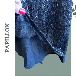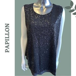 Papillon Sleeveless Sequin Blouse Black Round Neckline Back Keyhole Size XXL