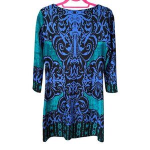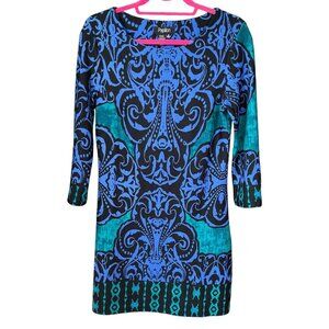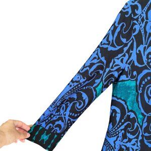 Papillon Womens Sweater Dress Size M Blue Black Baroque Maximalist Jewel Tone